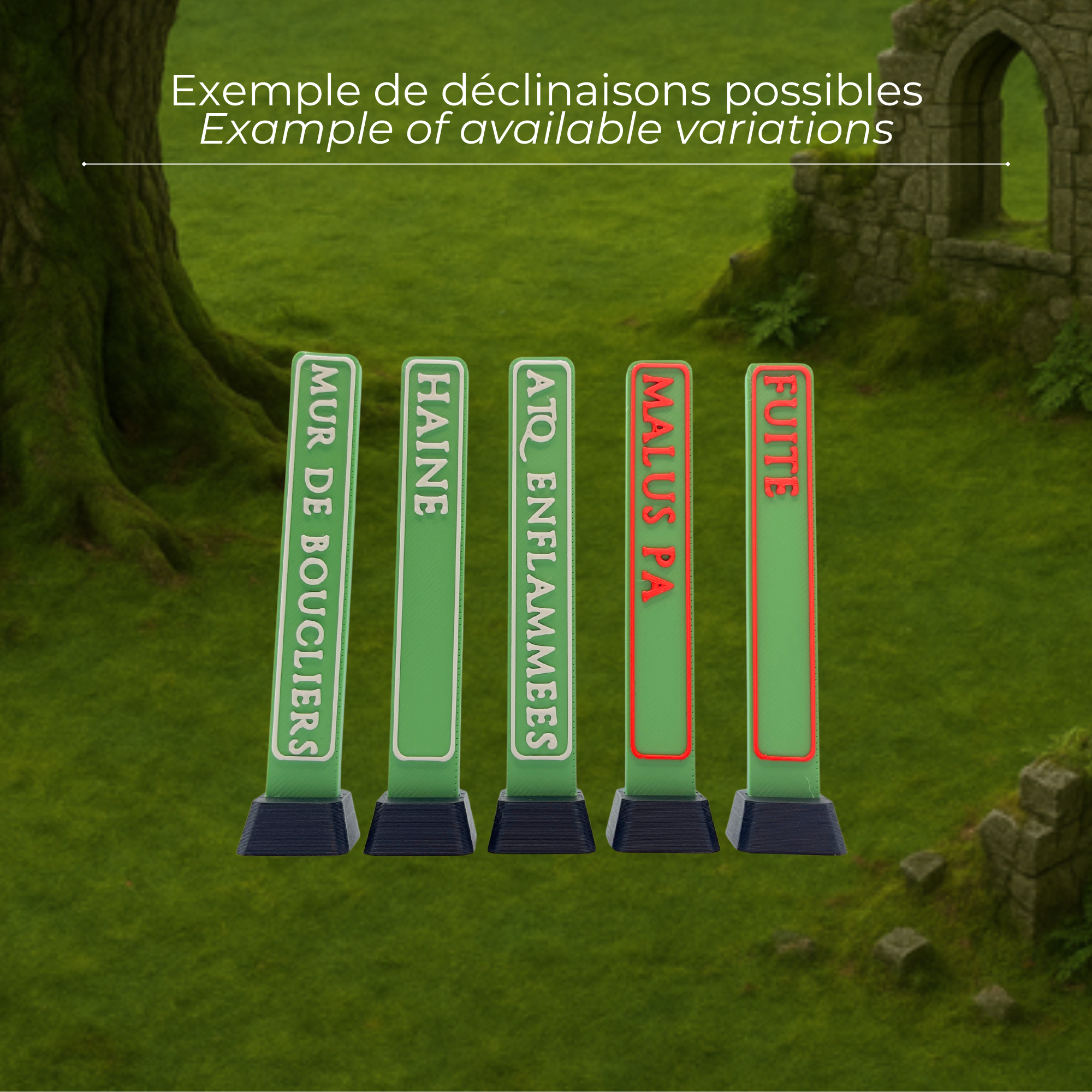 - Lisible verticalement, pour une reconnaissance immédiate en jeu