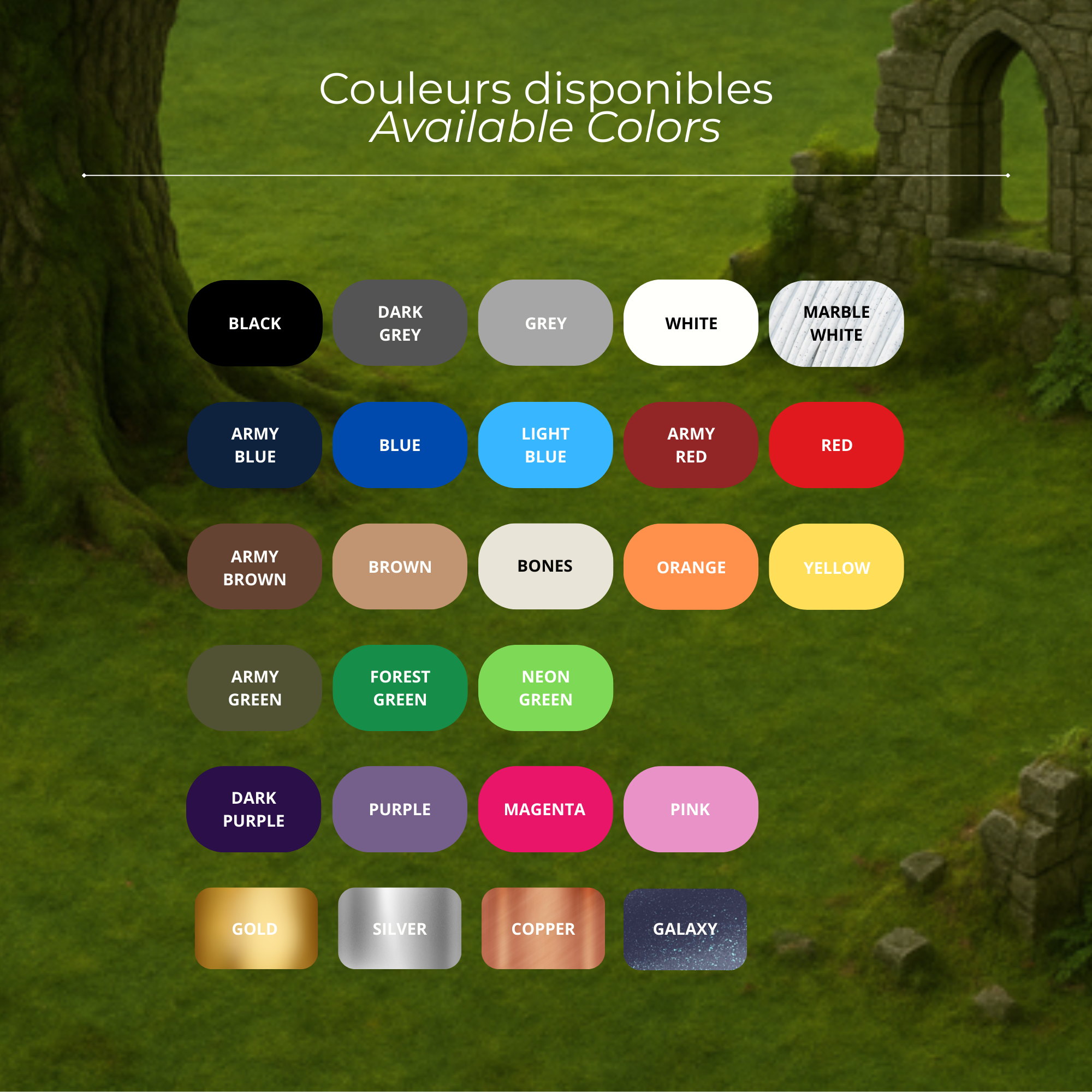 Personnalisez la teinte du token, du socle et du marquage pour créer un set unique à l’image de votre armée.