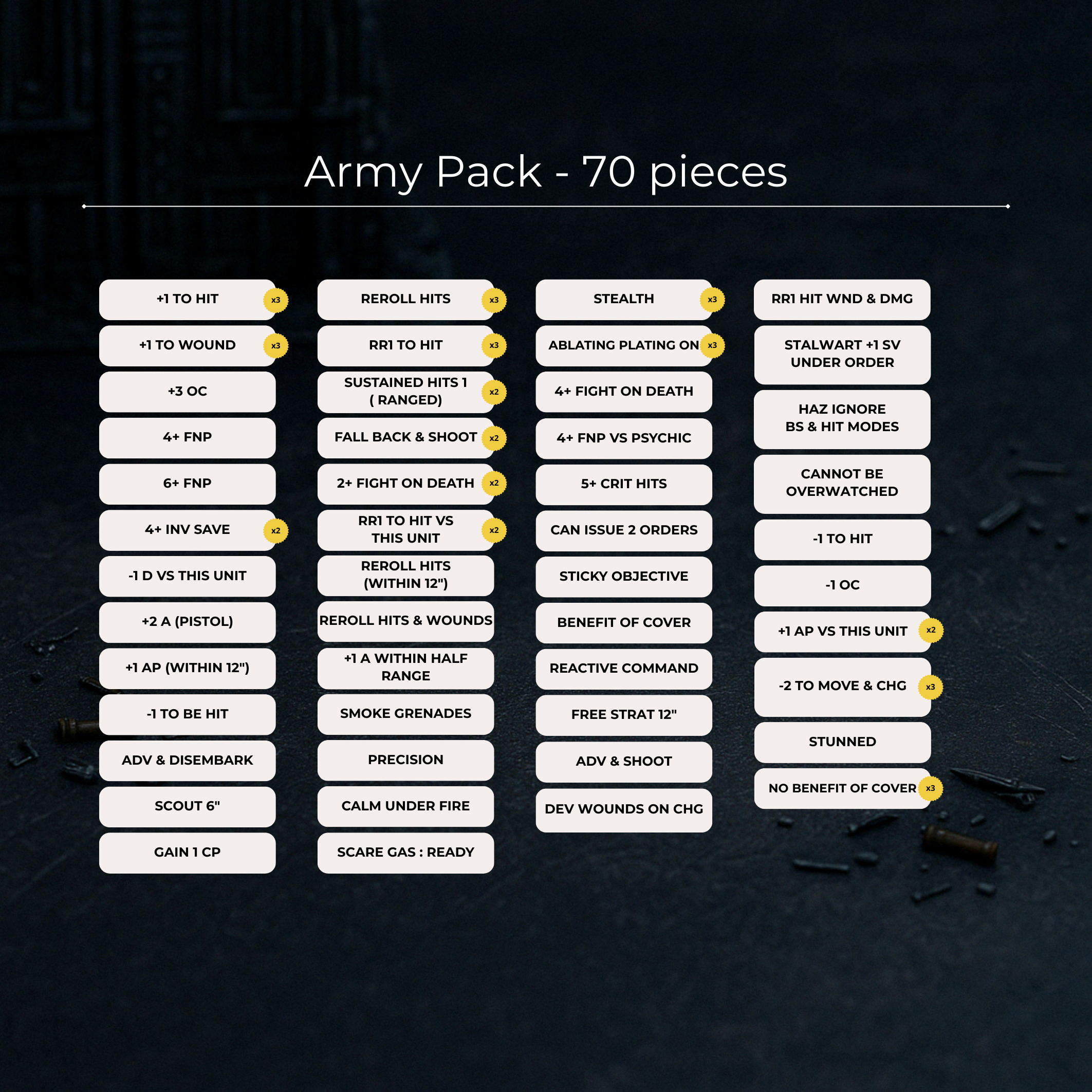 Particulièrement utile pour les armées utilisant de nombreux pouvoirs ou capacités.