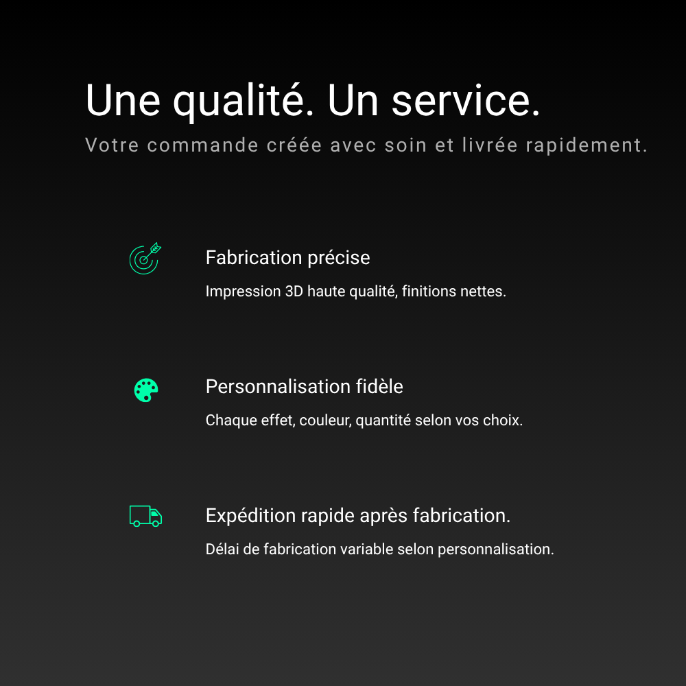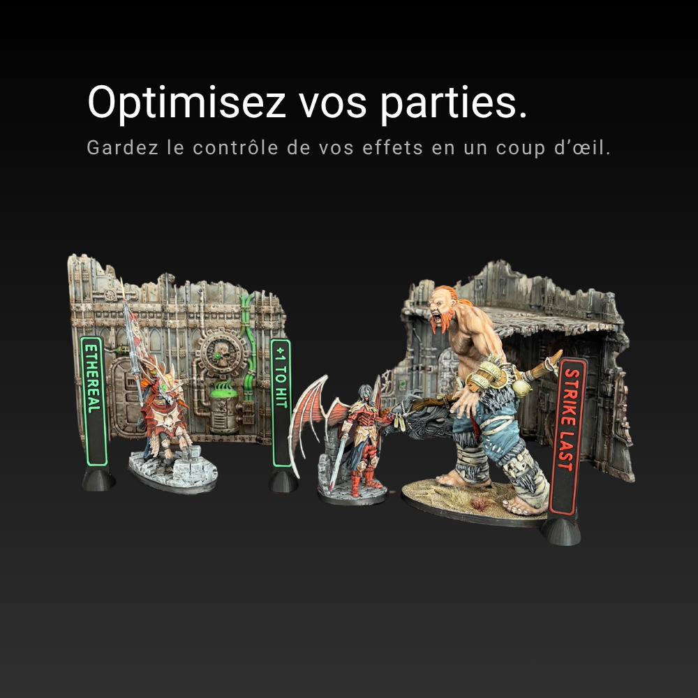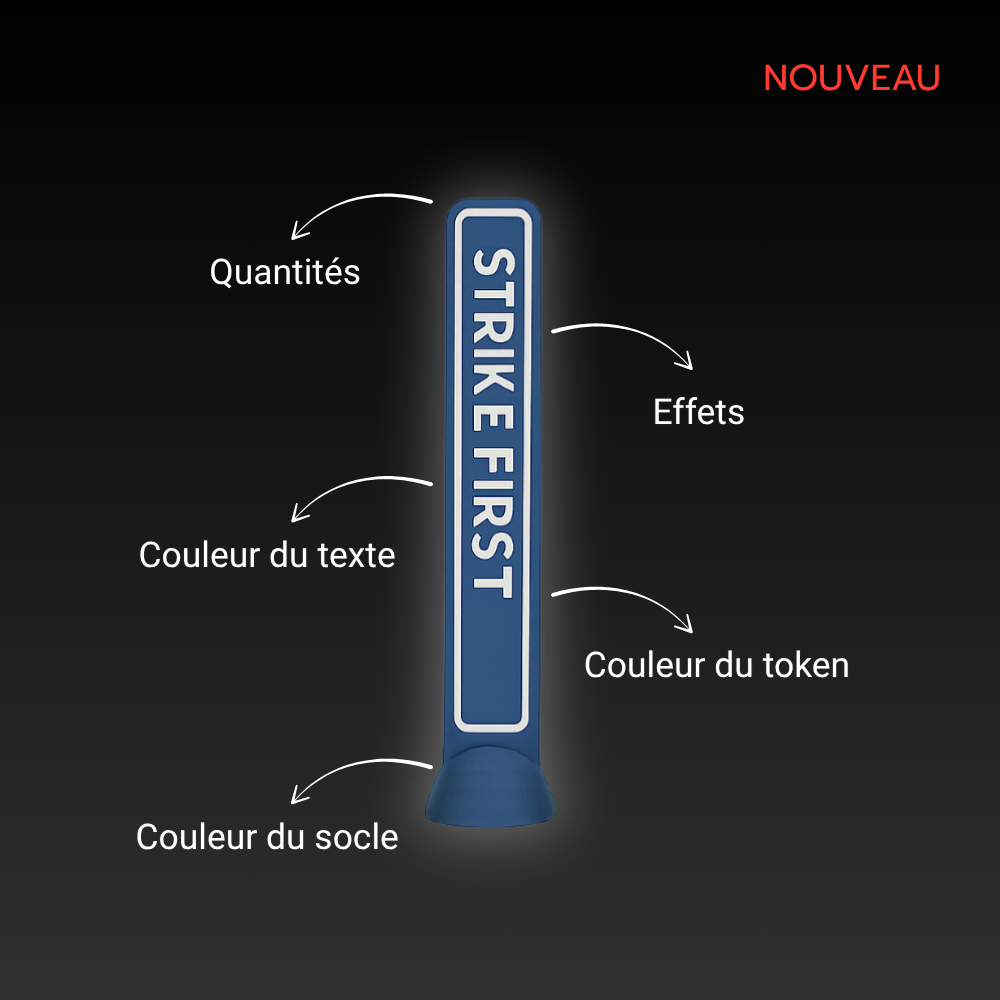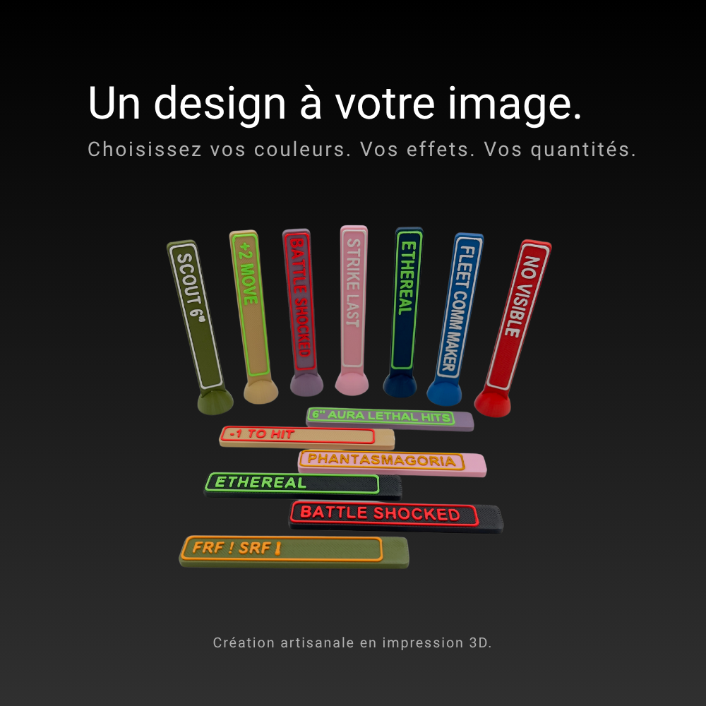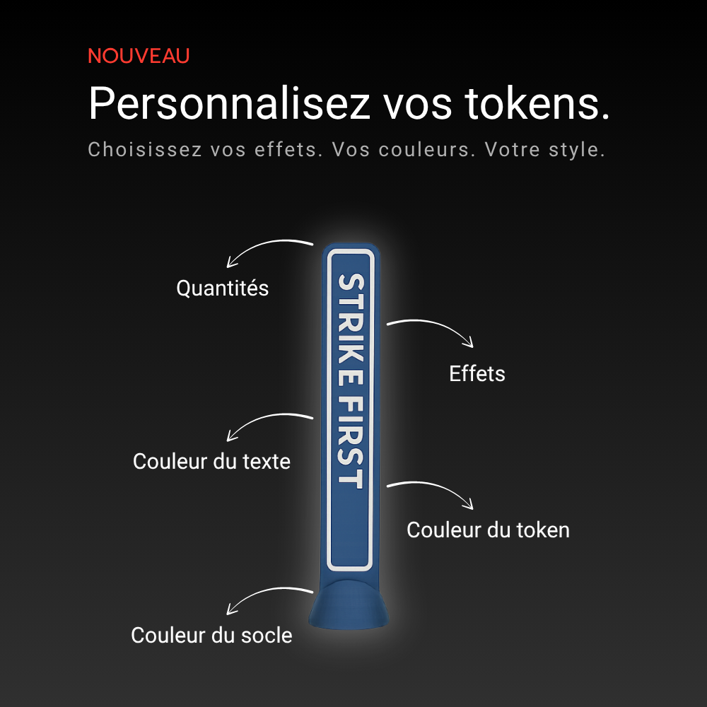 Chaque token est personnalisable : texte, couleur, socle… tout est à votre image.