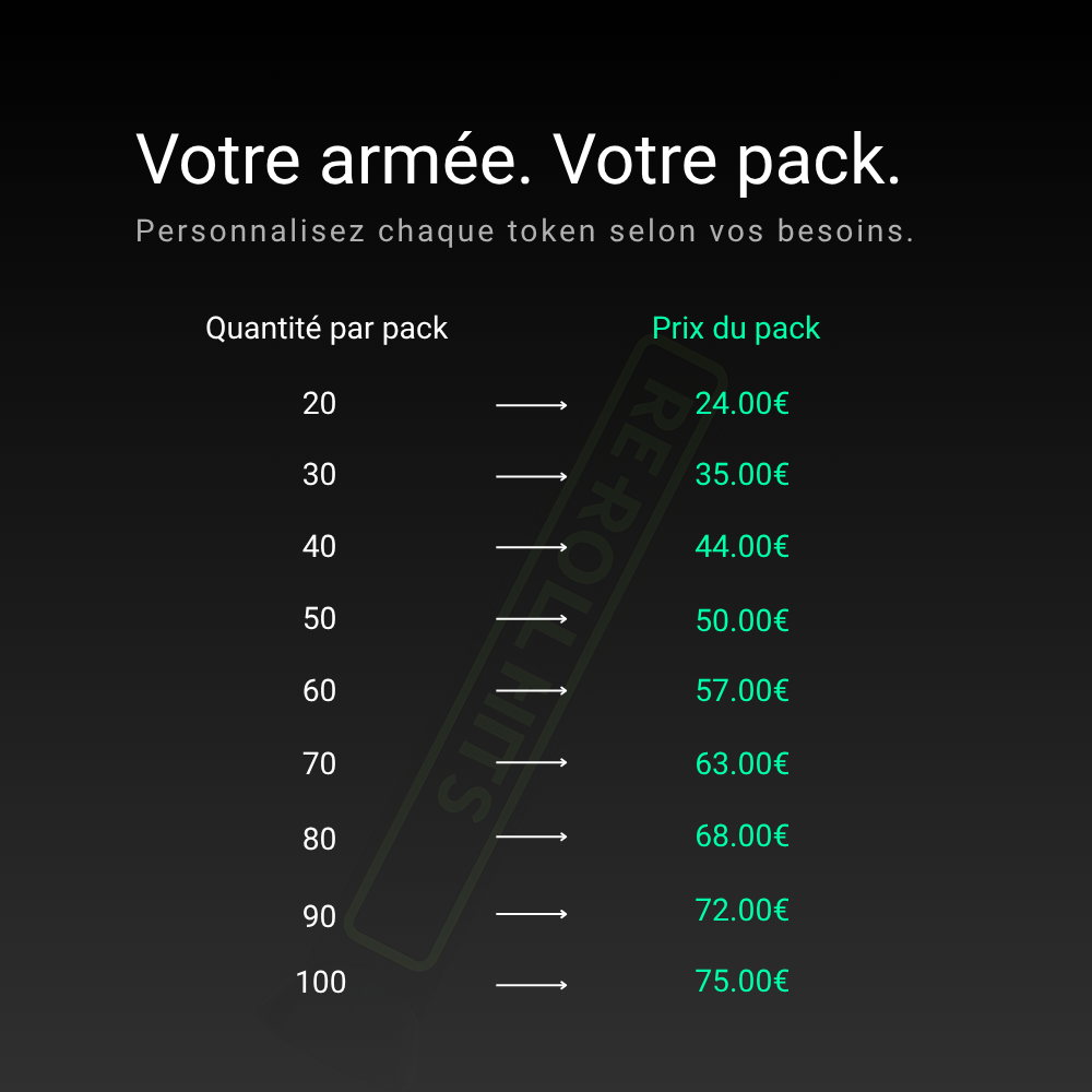 Créez un pack sur-mesure avec exactement les tokens qu’il vous faut pour vos parties.